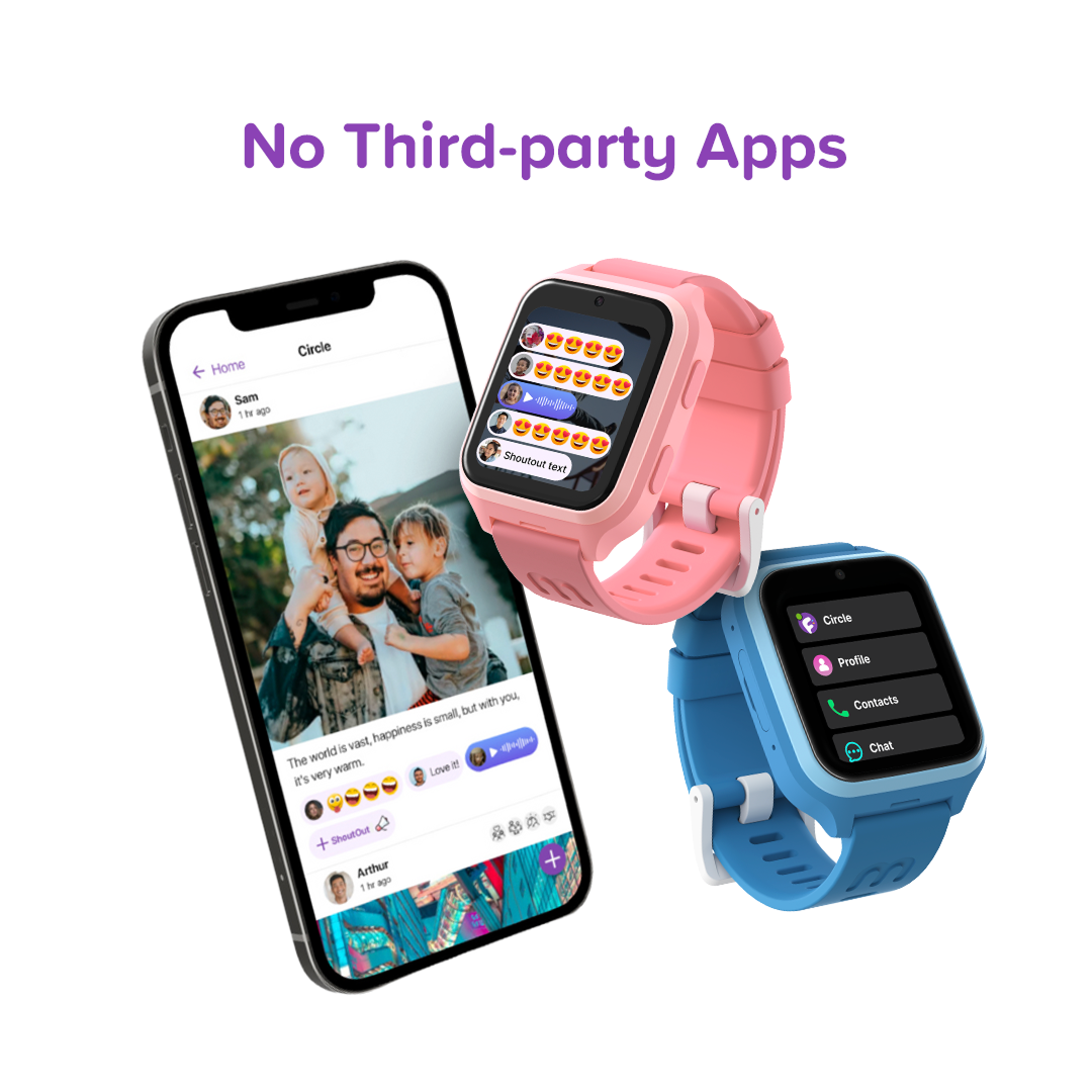 myFirst Fone M1 pairs with the myFirst Circle app, available on both iOS and Android. Parents can monitor, call, message, and manage safety settings directly from their smartphone.