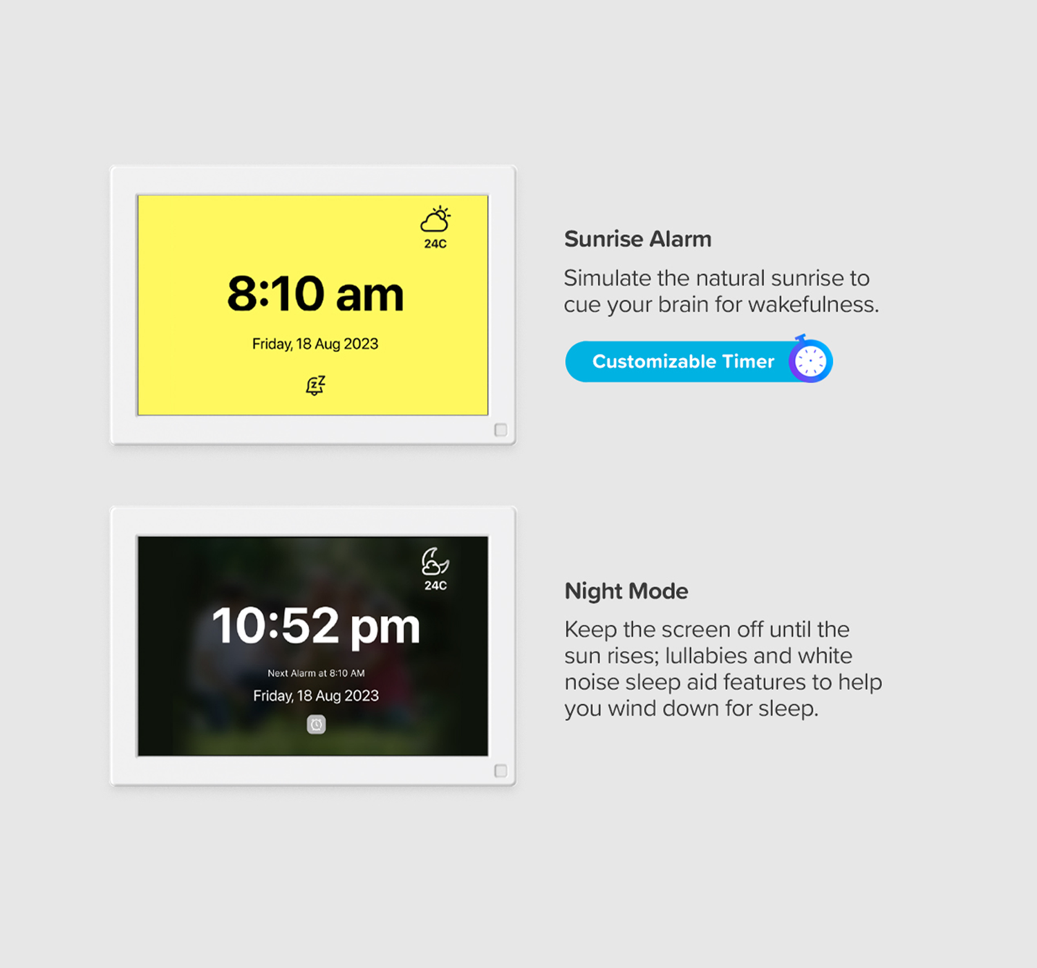 Our eco-friendly power-saving design automatically turns off the device when you exit the room, and it eagerly awaits your return, displaying new moments as you approach.