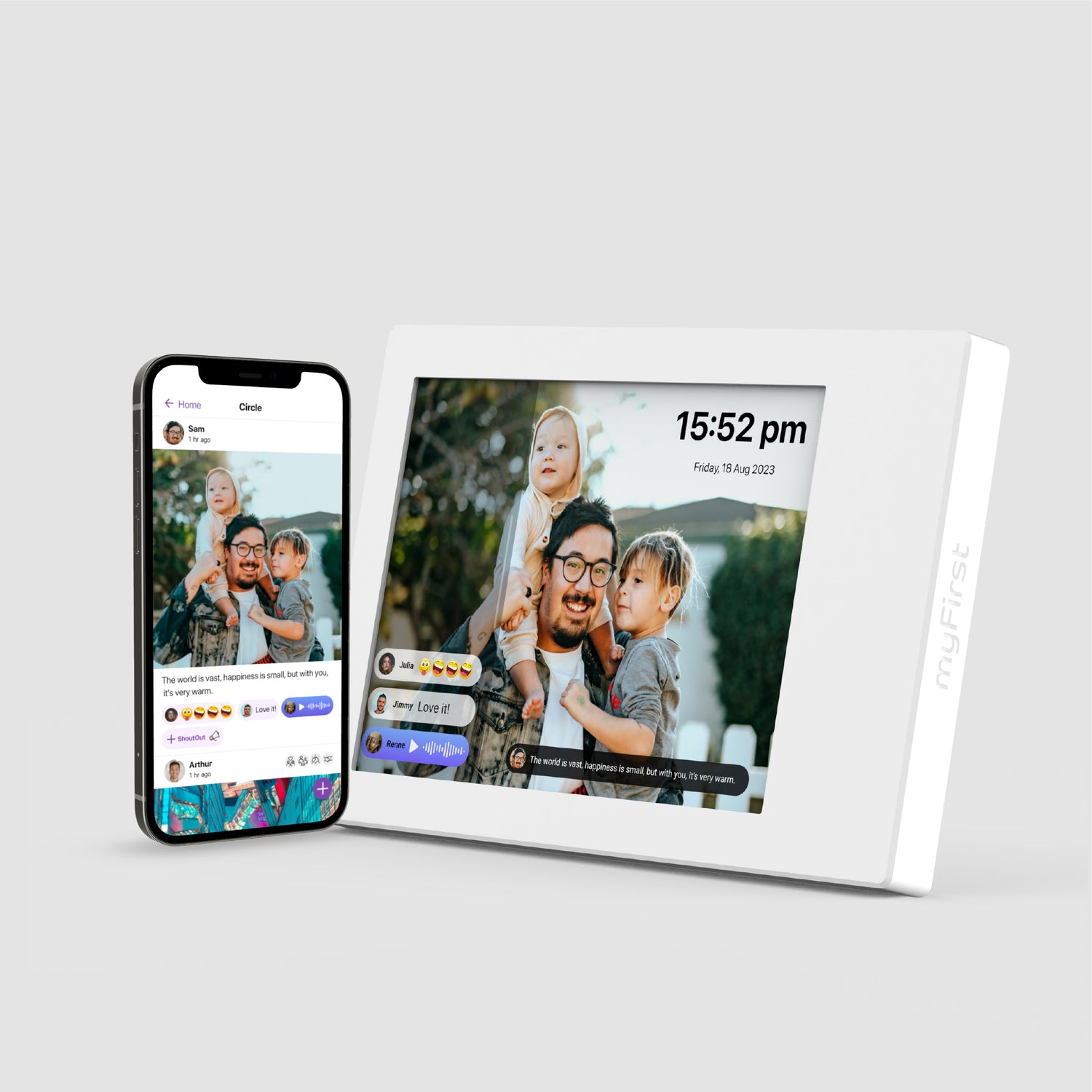 Crafted to foster stronger connections among loved ones, the Frame seamlessly synchronizes with other myFirst devices, showcasing a stream of content shared by family and friends.