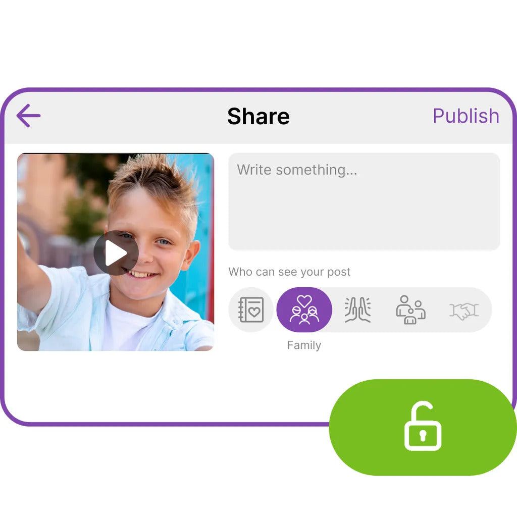 2. 限制分享:通过 myFirst Circle,家长可以控制谁可以看到孩子的作品,确保内容只限于受信任的圈子。孩子们可以在适合儿童的社交圈中发布照片,这些社交圈按关系类型(家人、闺蜜、朋友、熟人)分类,家长可以管理可见性并在必要时编辑帖子。