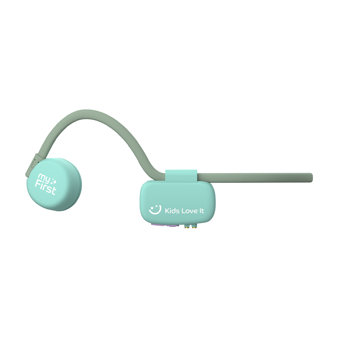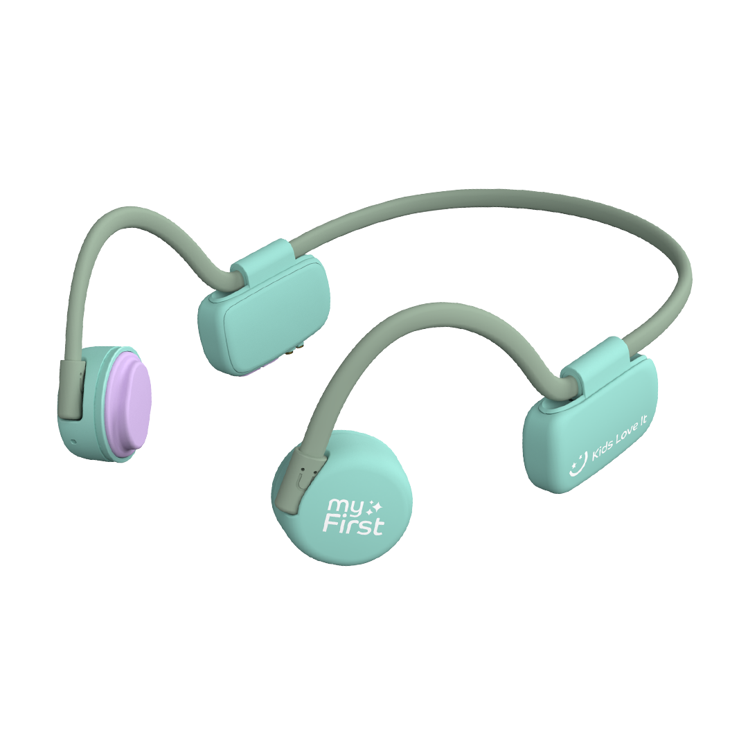 myFirst 耳机 BCW 使用骨传导技术,通过颧骨传输声音,同时保持耳朵对周围的声音开放。